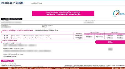 O local de prova será divulgado juntamente com o cartão de confirmação de inscrição do enem 2018 daqui 12 dias.