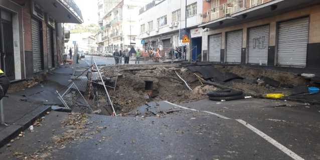 Una enorme voragine si è aperta stamane all'alba nel parcheggio visitatori dell'ospedale del mare, a ponticelli, alla periferia est di napoli.